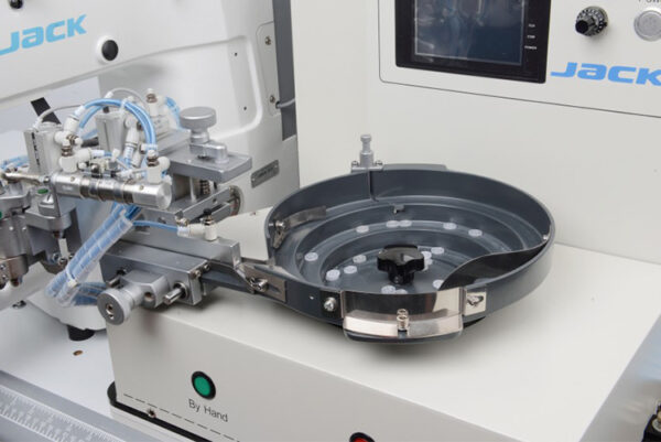 En primer lugar, la JACK JK-1903G-DII sobresale por su capacidad de almacenar hasta 200 patrones personalizados en su memoria interna. Adicionalmente, cuenta con un sistema de levantamiento de pinza automático que agiliza el cambio de prenda. Como resultado de su avanzada ingeniería, la máquina puede realizar el remate de seguridad final para evitar que los botones se desprendan con el uso.