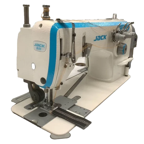 La máquina cadenera doble Jack JK-8560G-WZ-PL es un modelo industrial de 2 agujas diseñado para costuras largas, resistentes y elásticas. Incorpora sistema double chainstitch y puller posterior (PL), lo que garantiza un arrastre uniforme en materiales pesados como jeans y ropa de trabajo.