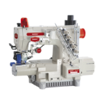• Sistema de 3 Agujas y 5 Hilos: Permite múltiples configuraciones de costura para recubiertos decorativos o funcionales.