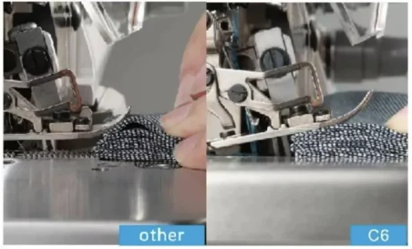 IA de Respuesta Inmediata: La C7 detecta cambios en las capas de tela (por ejemplo, al pasar por un tiro de pantalón o una costura lateral) y ajusta la potencia del motor en milisegundos para evitar que la máquina se «trabe» o rompa la aguja.